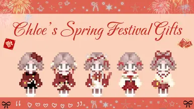 1、这套装包含多套受春节节氛启发的现代红色服装,并融入了红包、灯笼和糖葫芦等中国传统元素。愿这些作品为你的游戏带来温暖和节日的魅力。