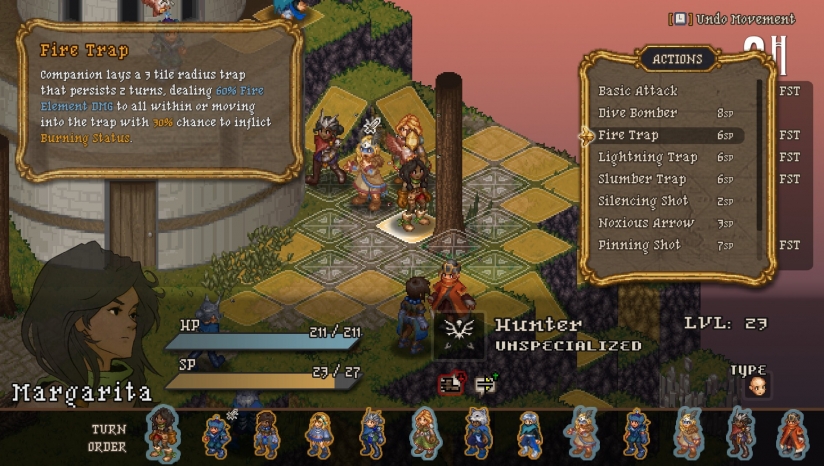 超过150种独特技能可供组合,包括元素克制(如冰面地形中火焰伤害翻倍)、陷阱部署、增益魔法等机制,战场需兼顾高低差、环境交互及敌方弱点。
