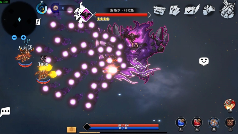 弹幕射击与走位操作:玩家需操控角色躲避密集弹幕,同时利用自动攻击与手动技能组合(每个角色可携带3主动+4被动技能)对抗敌人。