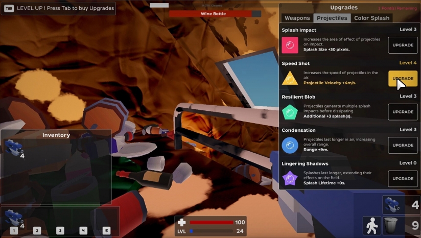 获得经验值,升级你的装备,解锁15种独特强化,覆盖三大类别:武器升级——提升射速、射程、精准度。泡泡强化——增加溅射范围,让泡泡反弹更多次。喷溅强化——增强特殊涂料的效果,优化移动方式。