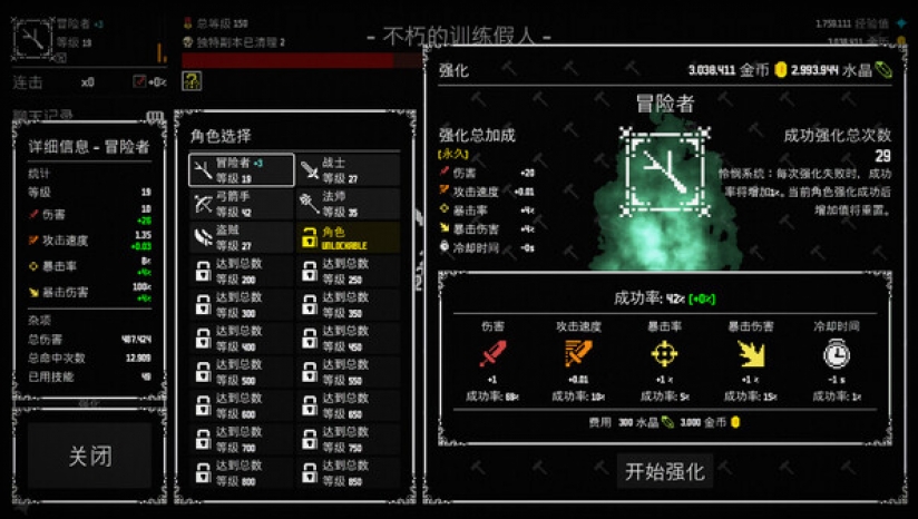 角色淬炼:动态概率系统结合“垫子机制”,允许玩家在失败中累积增益,实现无限突破。