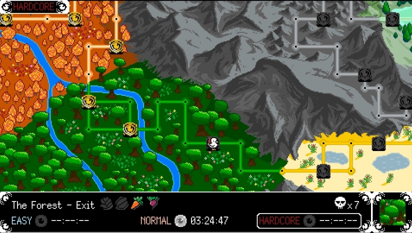 尝试收集游戏每一关中的4种蔬菜,有时它们巧妙地隐藏在秘密墙后面。但要小心猎人设置的陷阱!