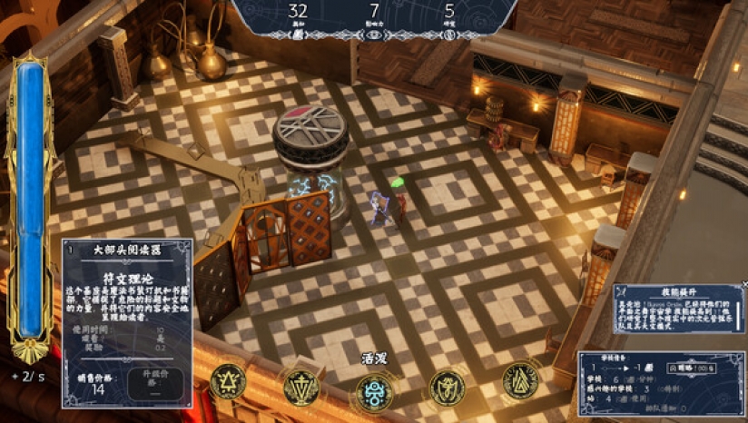 1、制定战略并建造理想的音乐学院,选择魔法研究的重点领域,不同风险、效果和难度的奥术工作站,以及具有长生力量的装饰品!