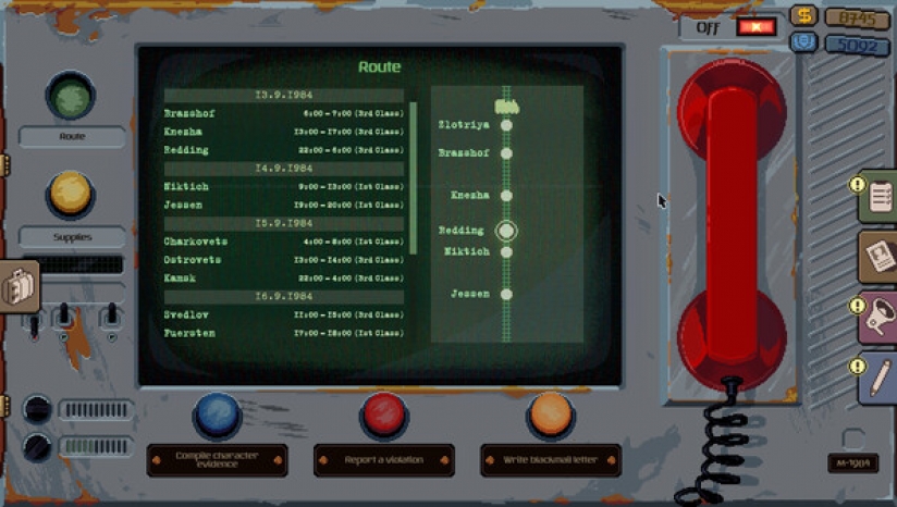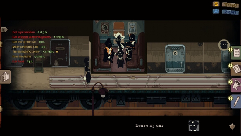 沿着列车前进:获取进出餐车或高层官员、大亨乘坐的贵宾车厢权限。盯住你的同事,发现他们受贿或运送禁品时上报事件。部门会感谢你的付出。