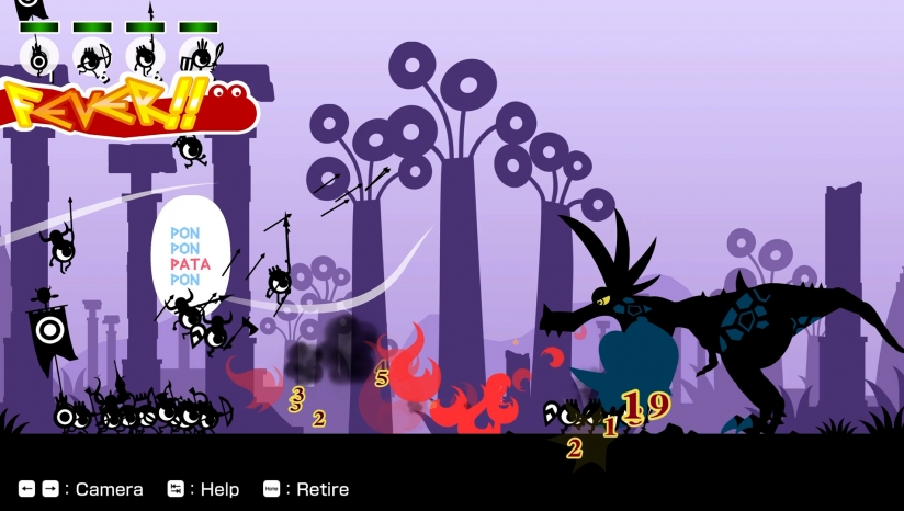 通过四个按键(对应PATA、PON、DON、CHAKA四种鼓声)输入指令,指挥PATAPON行军、攻击、防御或释放技能。精准匹配节奏可触发“Fever”状态,大幅强化部队能力。