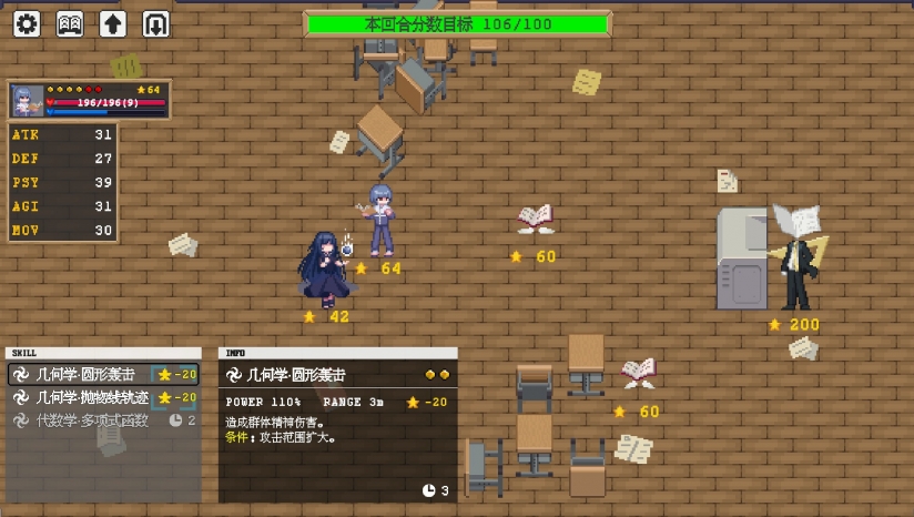 在战斗中将使用数学的力量,使用严密的推理逻辑提升自己的能力等级。