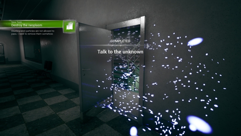 游戏采用第一人称视角,以赛博朋克风格为基调,结合故障艺术(Glitch Art)的视觉效果。实验室场景充斥着锈蚀的金属管道、闪烁的霓虹警示灯与扭曲的全息投影,营造出压抑而充满科技感的氛围。故障效果被巧妙融入解谜过程——例如,当玩家操作设备时,屏幕会随机出现像素错位、色彩分离或信号干扰,暗示系统的不稳定状态。场景设计注重细节与交互性:可破坏的墙体隐藏着秘密通道,动态光影随设备状态变化,甚至连角色的动作都会触发环境反馈(如踩踏积水引发短路)。这种沉浸式体验让玩家仿佛置身于一个真实且充满危险的实验场。尽管未明确使用引擎,但画面表现足以媲美中等规模独立游戏,尤其在场景叙事与视觉风格的统一性上表现突出。