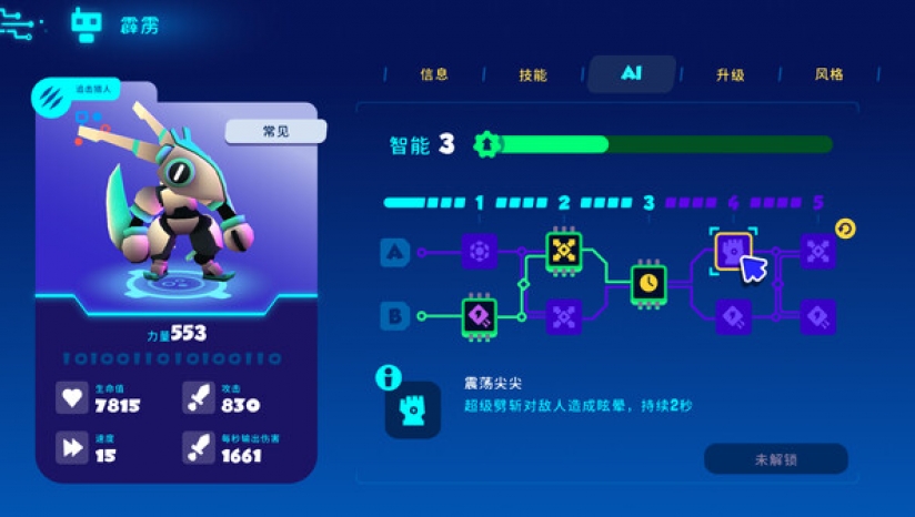 4、自定义你的玩家角色和机器人战队,提升他们的等级并学习新技能