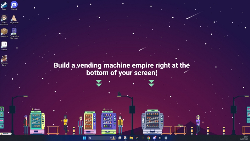 是一款像素风放置类游戏,设计用于在你处理其他任务时,在屏幕底部运行。你的目标是建立并扩展你的自动售货机帝国,保持机器库存充足,最大化利润。