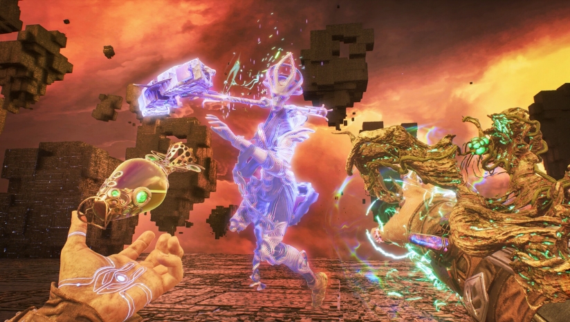 关卡中融入光束折射、机关触发等谜题,需灵活运用魔法特性解锁隐藏区域。尽管战斗节奏接近传统FPS,但魔法元素的多样性为策略性提供了空间,例如护盾需同色魔法破除,鼓励玩家动态调整战术。