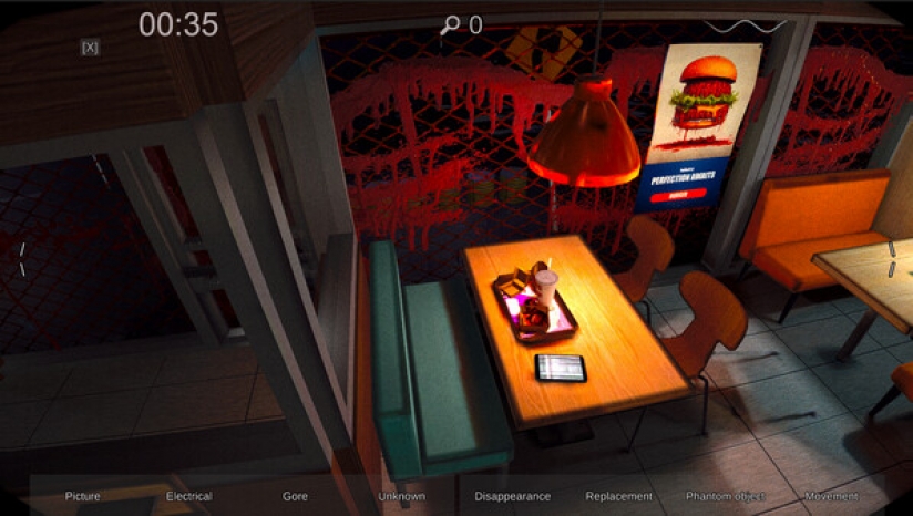 实时监控多个恐怖场景的安全摄像头。闪烁的灯光、移动的物体、本不该出现的影子——发现并报告异常,别等到太迟。