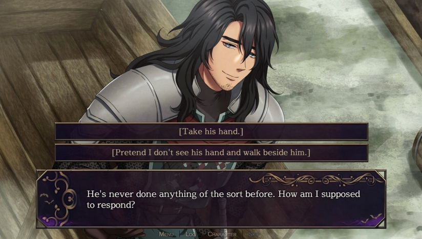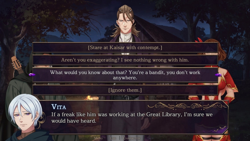 玩家几乎需要为主角选择每一句台词,数百种选项直接影响剧情走向、角色关系和结局分支。例如,可选择与人类男性角色Ran(正直的士兵)或Kaisar(复杂的神秘人物)发展浪漫关系,也可与女性角色Vita调情,或是与恶魔势力周旋。