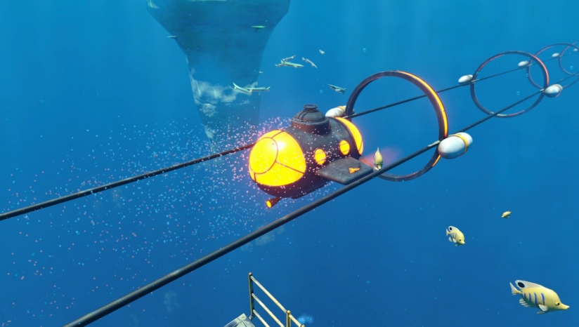 金属扭曲声、深海低频嗡鸣与环境配乐交织,配合闪烁光影与锈蚀贴图细节,强化未知深渊的压迫感。