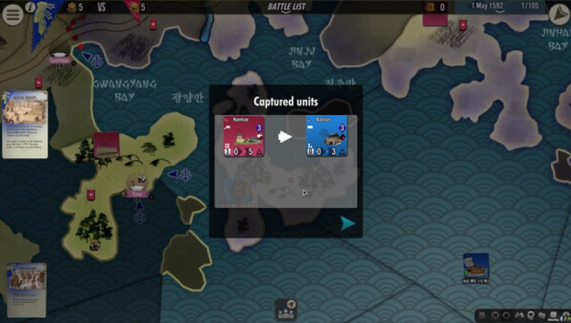 《壬辰卫国战争》讲述了 16 世纪末最激烈的冲突之一,描述了 1592 年至 1598 年(第二次入侵结束)日本入侵朝鲜王国的故事。日本人必须从他们在南方的釜山据点占领整个半岛。韩国玩家必须在中国的帮助下击退入侵......