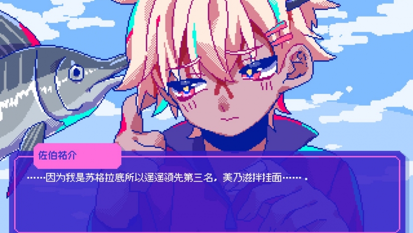 角色台词设计极致荒诞——佐伯混合无意义词汇("软软弹弹宇宙鳕鱼子");阿奥卢塔使用倒放式异国语言;田村出口即成暴言。玩家需结合上下文推测语义,强化"心动却无法沟通"的代入感;