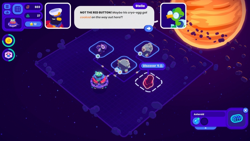 扫描附近的小行星,操纵漫游车揭露各种隐藏的资源,可能是冰块和金属,也可能是某些未知之物。建造生产设施,以便开采资源,实现生产流程自动化,让产品越来越尖端。将产品交予你的太空站,完成任务,满足群鸟们不论多么古怪的需求。搭建贸易路线,缔造繁忙的太空生产网络,并最终前往外星系,探索银河之谜!