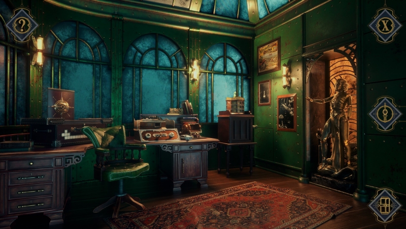 游戏以写实风格还原19世纪末工业美学:场景中氧化铜管缠绕裸露砖墙,巨型玻璃窗外雷雨交加,室内弥漫金属锈迹与尘埃细节。电流特效以动态蓝色光流呈现,在昏暗环境中形成视觉焦点。环境音效尤为突出,电流嗡鸣、机械运转声与雷声交织,强化了封闭实验室的压抑氛围。光影运用烘托神秘感,如设备启动时电流蓝光映照雨痕的窗格,暗示科技与自然的博弈。