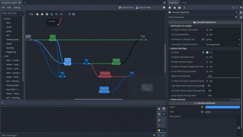 完全无需编程!强化的可视化脚本,曾在 "Pixel Game Maker MV" 中广受好评!就像 "RPG MAKER" 的事件命令一样,你只需连接箭头即可创建自己独特的动作。