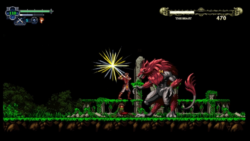 采用精细的16-bit风格像素画风,还原经典横版动作游戏的视觉体验,场景设计兼具哥特式建筑阴郁感与法国乡村自然风貌。