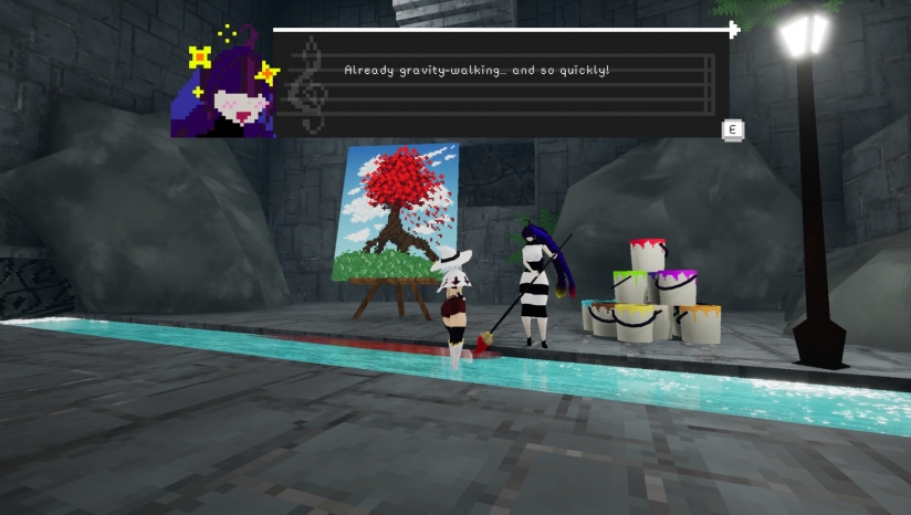 采用低多边形美术风格(Low-Poly)搭配复古像素元素,营造出梦幻而诡谲的视觉氛围。场景设计强调垂直空间的层次感,如倒悬的废墟、螺旋状走廊等,强化重力失控的沉浸感。尽管部分玩家反馈移动时视角易引发3D眩晕,但其鲜明的色彩对比与流畅的动态效果仍获得认可。