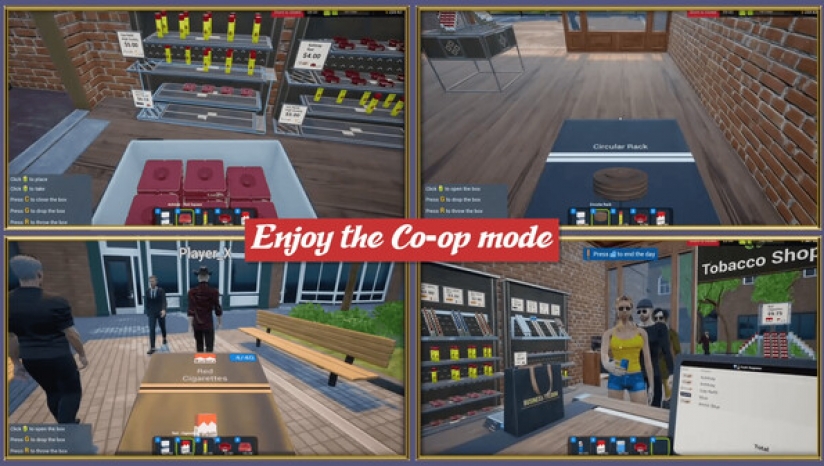 简中《烟店模拟器(Tobacco Shop Simulator)》是由Business Tycoon和Timeless Rush开发,Business Tycoon发行的一款第一人称模拟游戏,支持简体中文。玩家将扮演一家烟草店老板,与头部品牌签订合同,订购新产品,雇佣新员工,扩张店面,不让客户空手而归。独自游玩或与朋友合作,将您的小店拓展成一家大型烟草店。游戏最多支持4名玩家在线合作,快邀请你的好友一同享受模拟经营的游戏乐趣。
