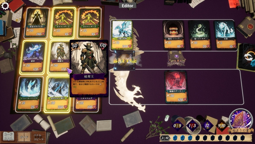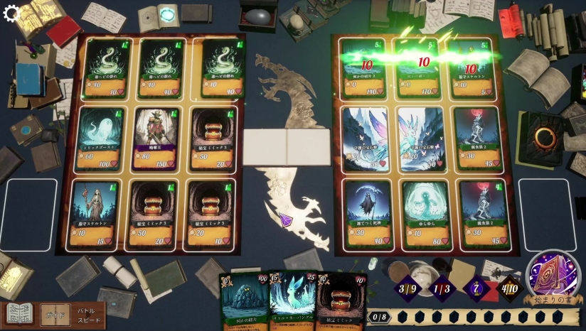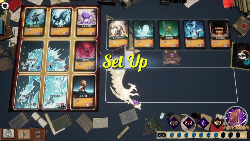 操控三本属性迥异的魔导书,每本提供专属卡牌流派,如元素系或召唤系。