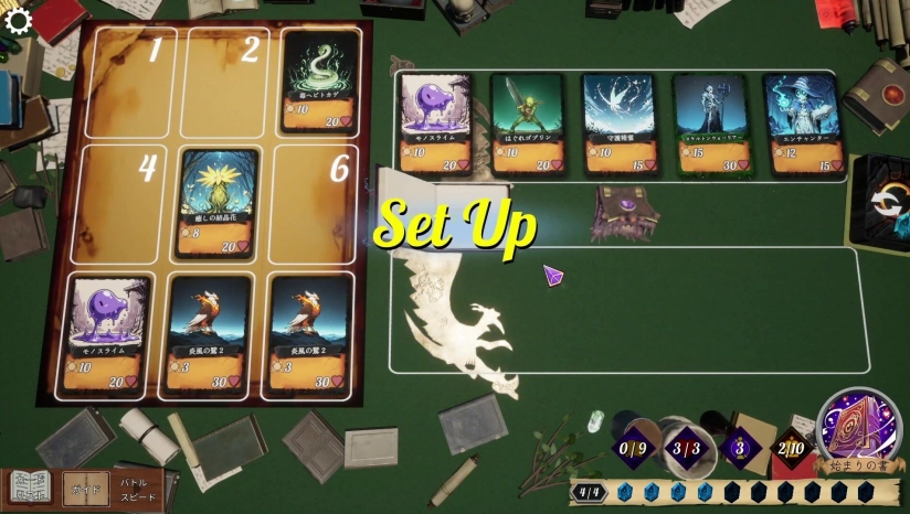 3×3卡牌布局:玩家需在魔法书页上排列9张卡牌,卡牌的位置、相邻关系及顺序直接影响战斗效果。例如,同系卡牌相邻可触发“链接”效果,激活隐藏协同技能。