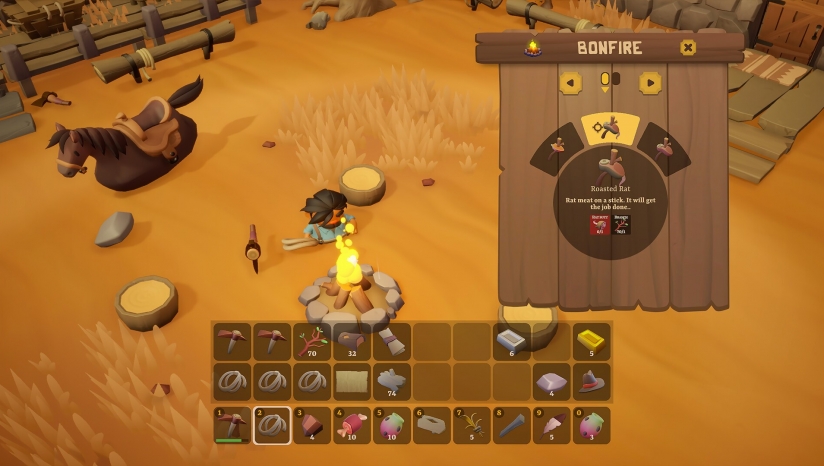 初期需制作基础工具(如套马绳捕获野马)和武器(如左轮手枪),用于自卫或应对野外威胁。