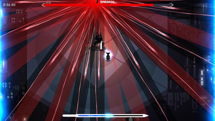像素动画流畅细腻,如冲刺三段变向的残影、弹反瞬间的刀光震颤,均以帧级精度呈现,增强操作反馈。