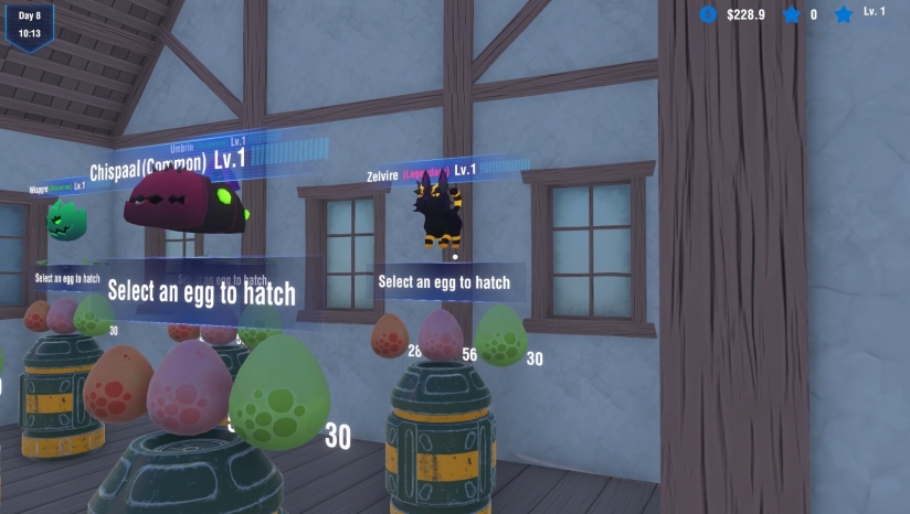 购买不同类型的蛋来孵化妖怪,并在游戏过程中解锁额外的孵化器。