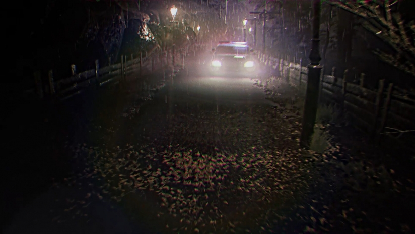 全程模拟老式录像带的视觉效果,如画面噪点、色彩失真、信号故障等,强化怀旧与不安感。