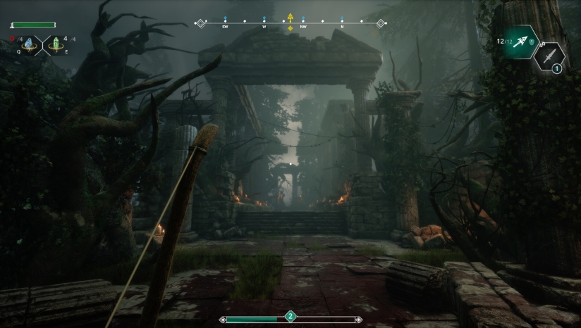 结合剑术、法术与弓箭三种攻击方式。剑术采用第一人称创新连击机制,法术可麻痹、灼烧或困住敌人,弓箭则用于狙击弱点或摧毁“黑暗之眼”(如阻挡道路的“阻挡者之眼”或赋予敌人无敌的“水蛭之眼”)。
