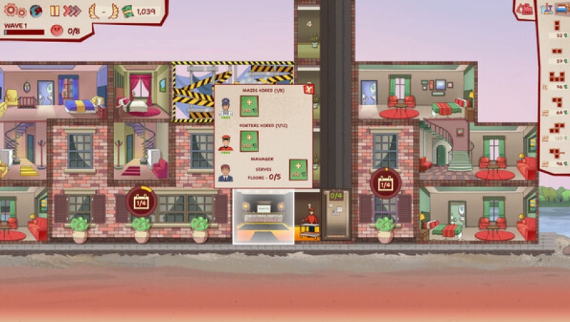 建造服务设施,如厨房、洗衣房、桑拿房和其他房型,满足客人的各种需求。雇佣传送员,为客人送餐,并将脏衣物和其他物品送到酒店的各个房间和楼层。尽量按时完成这些任务,避免收到差评哦!