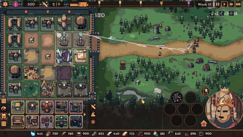 游戏采用复古像素风格,以明快的色彩和简洁的UI突出建筑与战斗单位的功能性。战斗特效如法术释放、兵种动作流畅,兼顾策略清晰度与视觉反馈。配置需求亲民,最低仅需2.0 Ghz处理器、2GB内存及1GB显存,支持Windows全系操作系统。