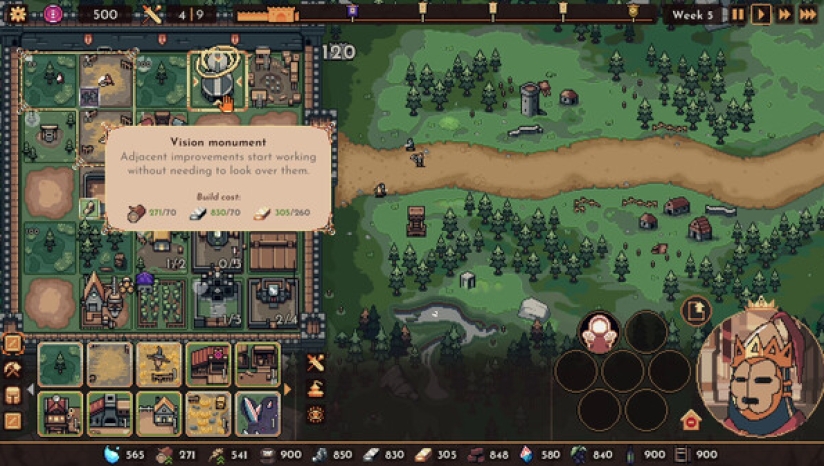 《王之凝视》是一款Roguelite风格的王国建造策略游戏,玩家化身国王,在中世纪幻想世界中通过持续注视管理资源生产与军队训练,子民仅在视线范围内工作,需灵活切换监视目标以平衡小麦、木材等基础资源与稀有材料的获取。游戏采用随机生成地图与敌人,每次挑战后可通过永久升级解锁新能力、建筑及7位特色国王角色,搭配21位顾问提供的资源增益或视野扩展,策略深度与重玩性显著。战斗中需抵御哥布林、巨魔等敌人及随机Boss,可召唤德鲁伊变熊、轰炸气球等特殊单位,并通过献祭之石、英雄雕像等法术强化防御。