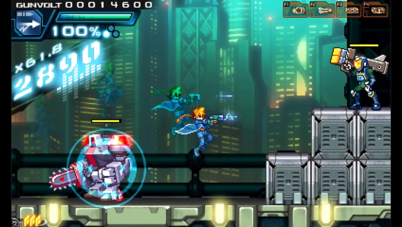 《苍蓝雷霆GUNVOLT》系列由Inti Creates开发,故事设定在近未来世界。人类中开始出现拥有“第七波动”超能力的个体,而巨型企业“皇神集团”以保护为名对他们实施强制收容与非人道实验。主角钢伏特(Gunvolt)作为反抗组织“飞羽”的成员,凭借操纵雷电的“苍蓝雷霆”能力,与皇神集团及其麾下的超能力者展开对抗。续作进一步引入新势力“伊甸”和治龙局,剧情围绕超能力者的生存权与自由展开。