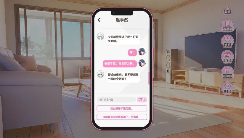 包含日程管理(平衡学业/实习/约会时间)、短信聊天(实时触发角色事件)、QTE互动(如紧急避开职场危机)等模块。