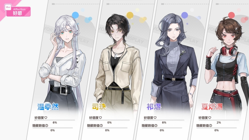 角色会因玩家选择产生连锁反应(如与司玦约会可能被温季然意外撞见并降低其好感)。