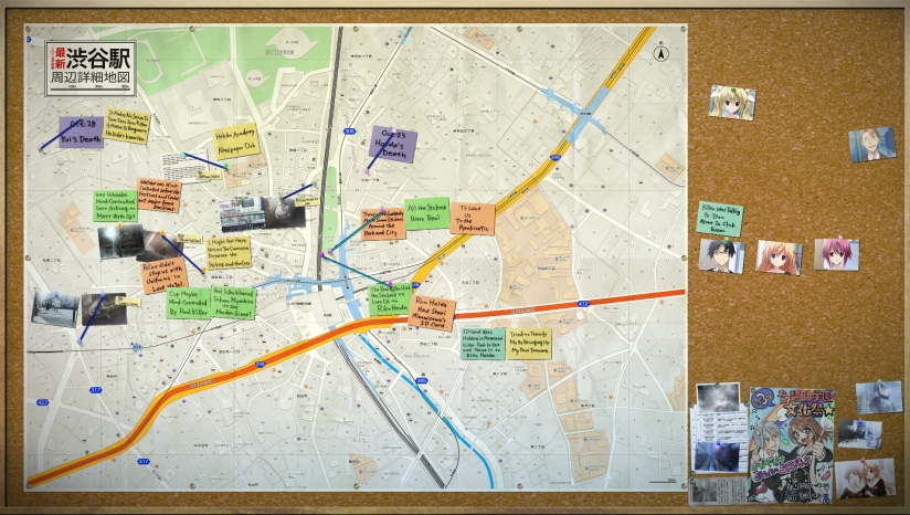 玩家需在新闻部黑板上整理案件线索(如照片、便签),通过逻辑推理拼贴证据链。此系统类似解谜游戏,错误选择会强制重试,直至正确为止。
