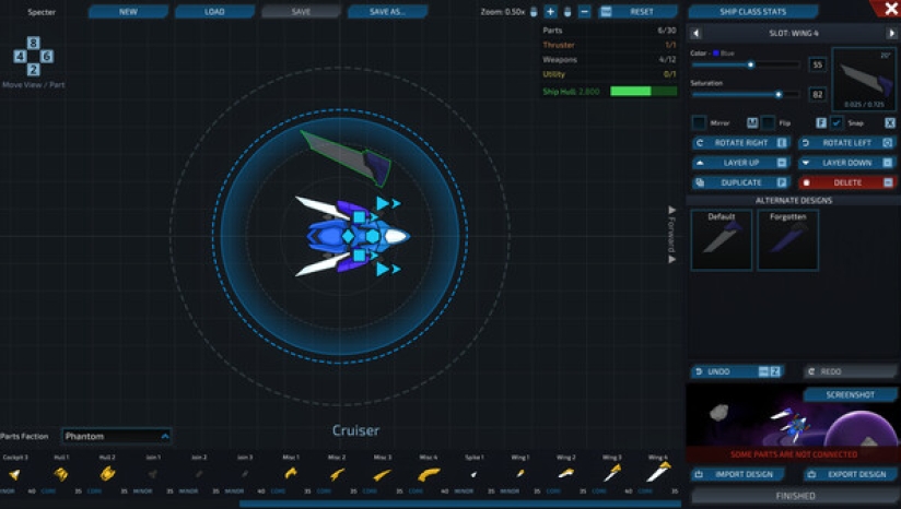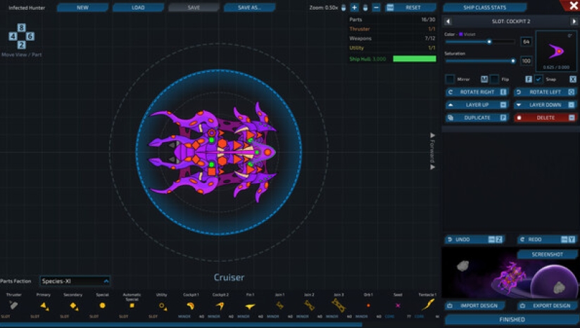 舰船的每个方面都可以由你来设计,不论是外观,还是武器设置和装备槽位,都可以随你设计。游戏还有舰船设计导入和导出选项,供你存下自己最得意的设计方案,与好友和社群分享。