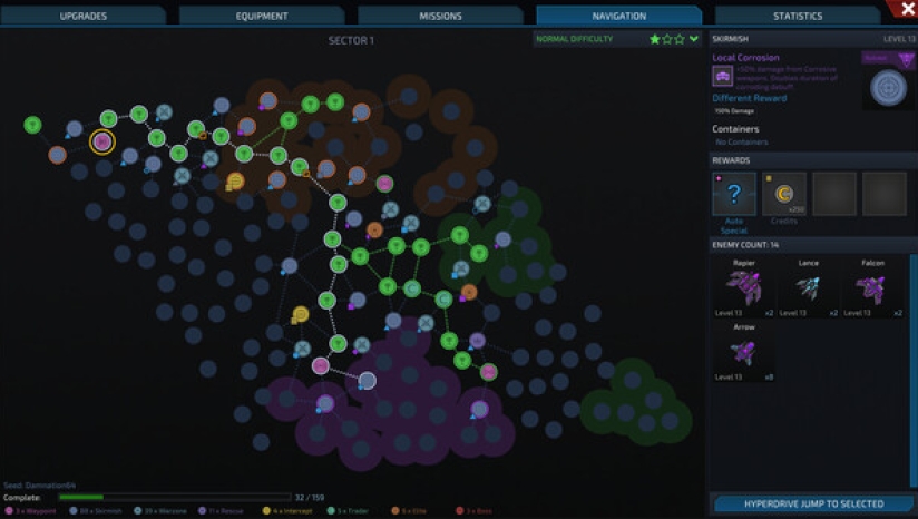 每局游戏星区随机生成,所以每局的体验都会各不相同,不过导航系统可以帮你规划航线。至于怎样探索一片星区,这个由你自己决定。你想直捣黄龙,直接冲向头目,还是希望慢慢探索,不断提升等级?建议中途去找一找稀罕的传奇升级项目和装备。虽然决定权在你手上,但是每个星系都潜伏者危机。