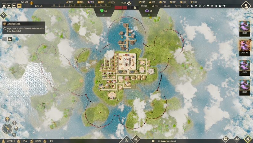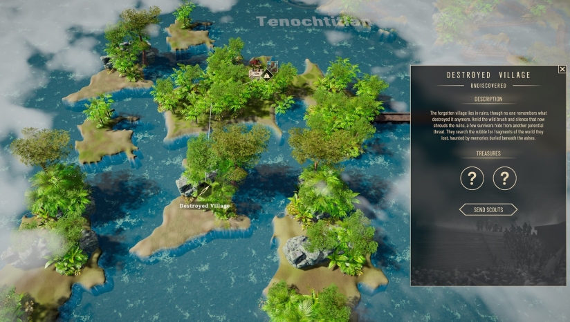 在湿地环境中修建运河网络,发展特色农业“奇南帕浮田”,管理12种资源链(木材、可可、黄金、血液等),并建造金字塔神庙等标志性建筑。