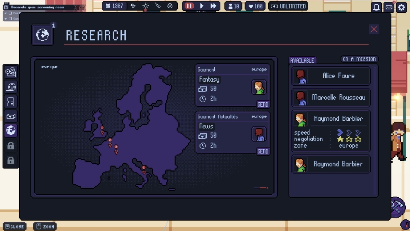 3、管理电影院的每个方面——根据游戏机制与你的个人喜好安排排片与场次,雇佣合格的工作人员,设定门票与影院商品的价格等等,确保你的放映厅始终做好准备迎接一场重大首映活动。但别忘了,这一切都基于电影本身。派遣专人去世界各地寻找那些真正优秀的电影,从好莱坞的特效巨作到日本的剑戟片,从中国的史诗巨作到宝莱坞的歌舞片,都能出现在你的放映厅。