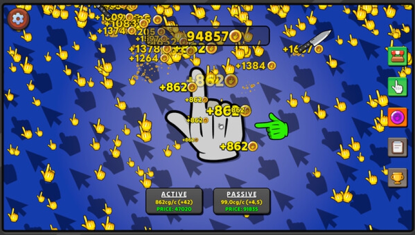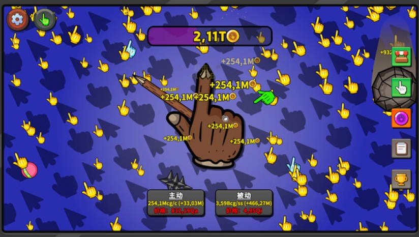 当你点击主光标时,金色的下落光标就会开始生成。它们的生成速度取决于你的点击进度。点击这些掉落光标会获得比主动点击更多的点击金币奖励。