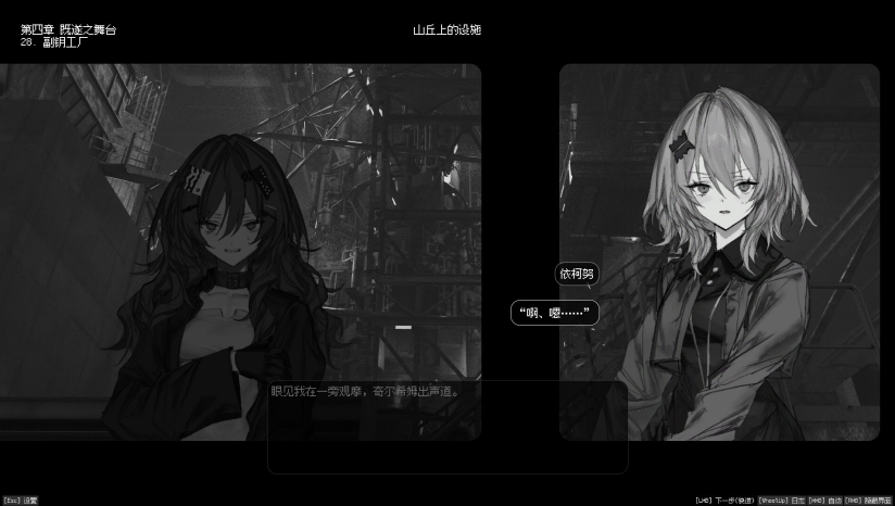 采用手绘美术风格,冷色调主导渲染压抑战时氛围,场景融合废墟都市与超现实元素(如“星空”“地狱之门”)。动态立绘增强角色情绪张力,过场插画采用电影分镜叙事(如“序幕”“尾声”),搭配环境音效与氛围音乐深化沉浸。配置需求亲民(最低需Intel UHD 620显卡),优化侧重叙事流畅性。