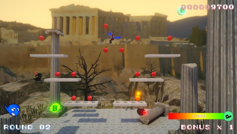 扮演一个戴着小斗篷的英雄,他的职责是收集炸弹,防止东西被炸毁!在这个复古的80年代风格的街机游戏中,你将帮助无畏的英雄贾格尔抵御敌人的机器人和不明飞行物,因为他跳过平台、空中跳跃,并使用向下的破折号在为时已晚之前取回燃烧弹!