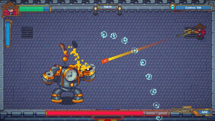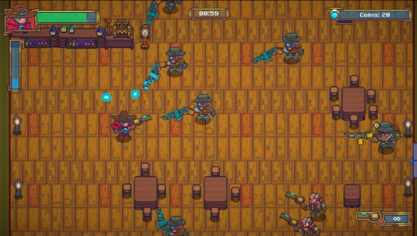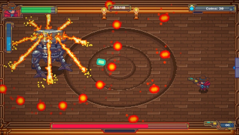 随着电控技术的发展,狂野西部也益发狂野了,接下来你的任务是消灭肆虐的匪帮,因为他们正在利用这种技术危害诚实而勤劳的当地人!你将扮演一位装备机械臂和大量增强型武器的蒸汽朋克枪手。《The Legend of Cyber Cowboy》是一款自上而下的双摇杆射击游戏,以华丽的像素艺术风格呈现。