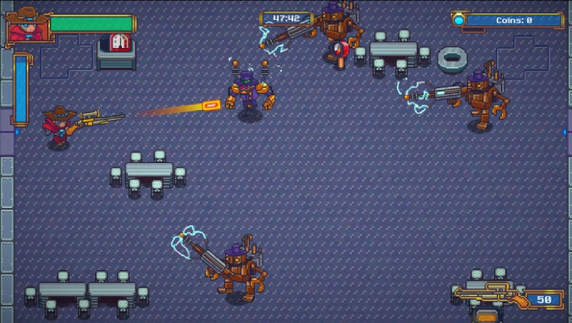 简中《The Legend of Cyber Cowboy》是一款由Eastasiasoft Limited开发制作并发行的动作游戏。化身一位蒸汽朋克枪手,从电控匪帮的魔爪中解放小镇! 《The Legend of Cyber Cowboy》是一款自上而下的双摇杆射击游戏,以华丽的像素艺术风格呈现。