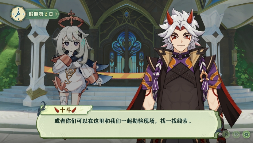 在庆典场景中搜集证物、对话NPC,整合线索碎片。