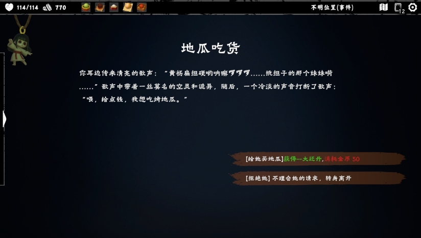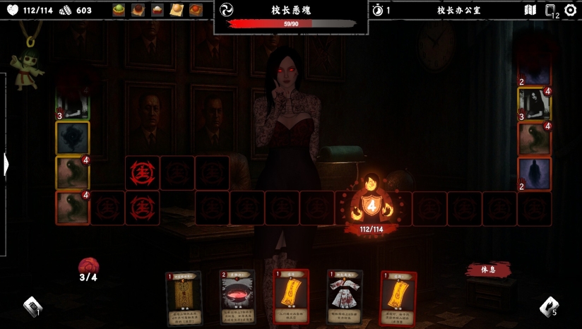 任务地图采用多分支路线,玩家需权衡探索、战斗或休整选项,随机遭遇灵异事件并收集法器(如镇魂铃、驱邪符),构建生命恢复、护盾防御等流派应对恶灵亡语、位移等机制。